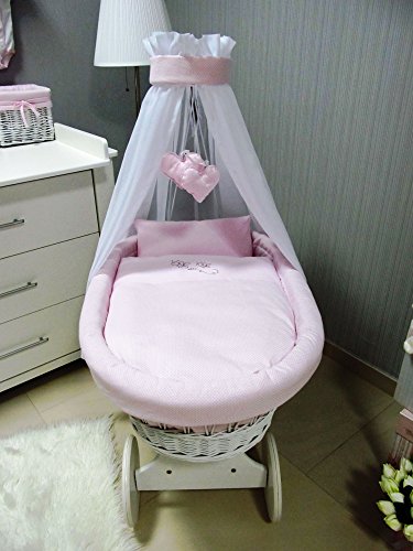 10 pcs Set - wicker crib moses basket bassinet including complete furnishings, Modell:rosa - big wheels is available in Bassinets