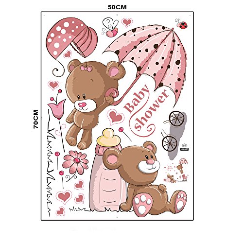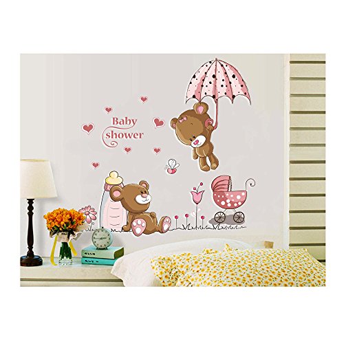 Gorgeous Adhesive And Removable Wall Stickers For Children's Bedrooms With Bears, Pram And Baby Bottle