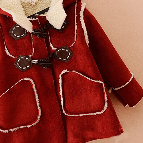 Arrowhunt Baby Girls Winter Warm Faux Fur Sherpa Duffle Hooded Coat Red is available in Coats & Jackets