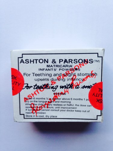 Ashton and parsons teething powder is a natural herbal remedy to relieve infants of stomach ache and pain while teething. Teething with a smile! For babies and toddlers Instructions and dosage are written on the box.