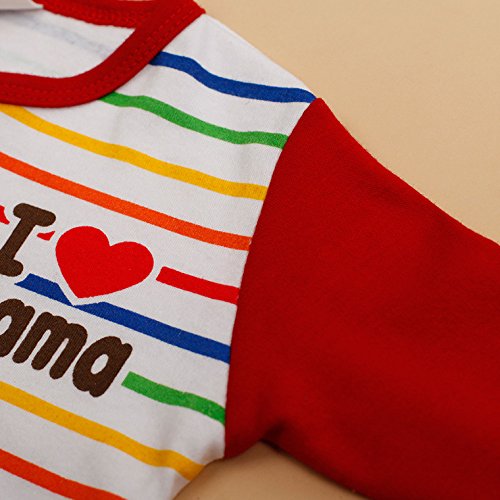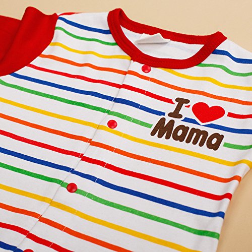 Baby Boys Girls Autumn Long Sleeve Colourful Striped "I love Papa mama" Romper (80(0-9M), Red) is available in Rompers