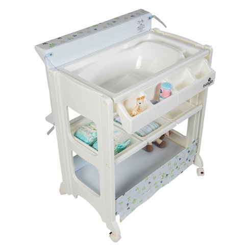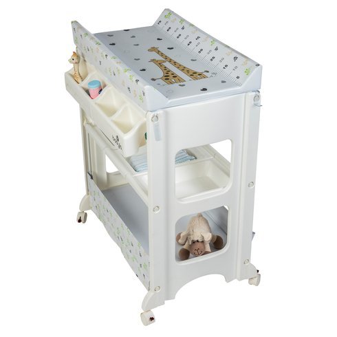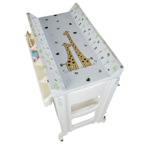 The Babylo Savannah Giraffe Baby Changer is ideal for all babies from birth. The Babylo Savannah Giraffe Baby Changer has raised sides for your child's extra safety. Includes convenient upper storage compartments, storage trays underneath and a bottom shelf for further storage or accessories. Babylo Baby Changer has sturdy frame with lockable castors for manoeuvrability and a concealed removable bath unit with easy water release and drainage.