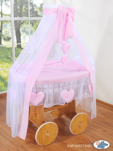 BEAUTIFUL NEW BEDDING SET ONLY FOR BABY WICKER CRIB BASSINET IN WHITE / PINK COLOUR WITH DRAPE is available in Bedding Sets