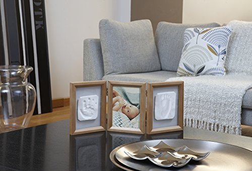 Create a lasting memory for life and treasure your baby's hand or footprint with this beautifully designed photo frame. In a matter of seconds, you can create a memory that will last forever. The baby art double print frame is suitable from birth to 3 years of age, and with the easy-to-use clay you can create two impressions of your baby's hand or footprint. The material is dermatologically tested and safe to use on your baby's skin. You can also personalise the frame by adding your favourite image (13 x 13 cm) of your new family to really capture this special time in your life. No additional materials or tools are required, everything you needed is included in the box. An original and creative souvenir that will please parents whatever their taste and their home interior style, the baby art double print frame is an irresistible gift idea that can be given at a range of celebrations including baby showers, christenings, birthdays, and even as a present for the entire family.