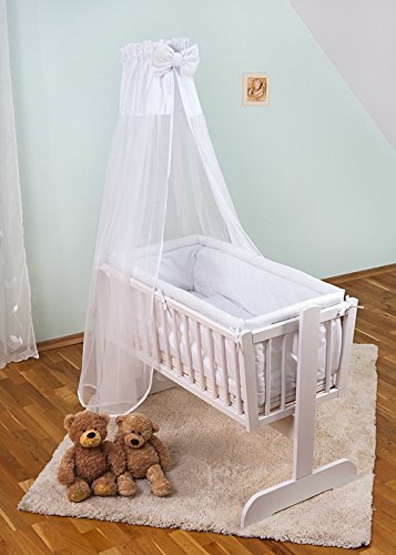 6 Piece Baby Crib Bedding Set 90 x 40 Canopy Fits Rocking / Swinging Cradle - PLAIN WHITE is available in Bedding Sets
