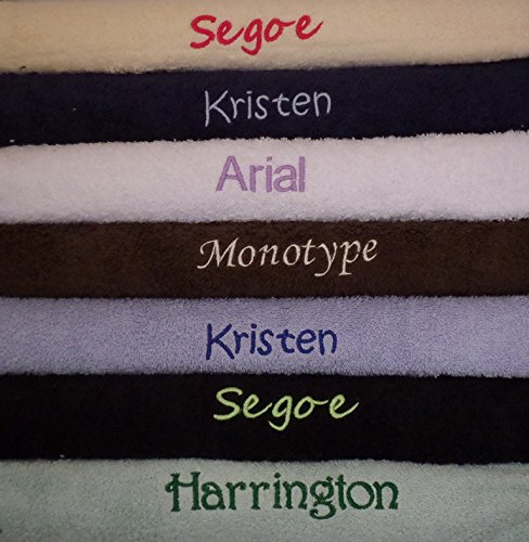 450gsm Luxury Baby Bath Robe embroidered with a Booties Logo and personalised name of your choice, Maximum 10 letters. Available in White. Can be embroidered in Black, Bubblegum Pink, Cerise, Chocolate, Green, Gold, Lime, Lilac, Mink, Navy, Pink, Purple, Red, Royal Blue, Sage, Sky Blue, Silver, Sand, Yellow, White We will embroider in arial unless one of the following fonts is stated - Mono, Segoe, Kristen or Harrington.