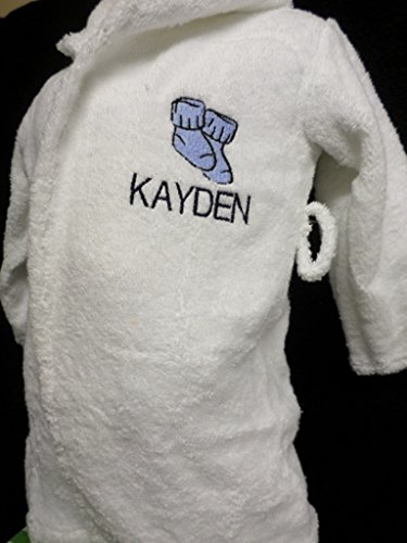 Verified Purchase This review is from: Baby Bath Robe with a Booties Logo and Name of your choice. 0-9 months, 450gsm
