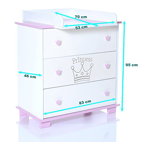 Baby Changing Chest Princess - Nursery Furniture Changer Unit With 3 Drawers - Baby Changing Table removeable is available in Chests of Drawers