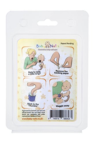 Stop 'thumbling' around with your baby's nails. Slip a 'Thumble' nailfile onto your thumb and keep hold of your baby whilst filing their nails. Invented out of necessity for our own baby we hope this product will help you to keep your baby's nails smooth and short. Using our patent pending 'Thumble' and disposable adhesive nailfiles, you will have both hands free to cradle your baby using just your thumb to do the filing in a relaxed manner. We find the perfect time to smooth our baby's nails is when feeding. Having both hands free allows you to feed your baby on the breast or with a bottle and file away in a relaxing manner. Baby Nails also has an opening on the front allowing you to wear the nail file securely, even with a long thumbnail. The Baby Nails Standard pack comes with 10 three months+ disposable adhesive nail files and our patent pending 'Thumble'. Pack Contents are: 1 'Thumble' and 10 three months+ nail files If you run out we also sell the disposable nail files separately # PS: We won't tell anybody if you use our product to keep your nails looking nice and trim too!