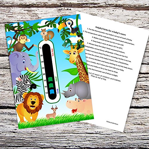 This Easy Read Room Thermometer from Baby Safe Ideas is a cute product to help you ensure that your baby's room or nursery is kept at the ideal temperature and recommended by The Lullaby Trust and SCDT. This easy to read thermometer allows you to see a quick and accurate room temperature reading. This innovative nursery thermometer by Baby Safe Ideas allows you to see immediately if your little one's room is too hot, too cold or just right, by displaying a temperature reading and changing colour, providing you with instant reassurance that it is the perfect sleep environment, and helping you to know if it is necessary to adjust baby's clothing and bedding. The perfect nursery room temperature should be maintained at between 16-20°C as shown by green bars on the scale. If baby's room is too cold, then the thermometer scale shows only one blue bar. If the room temperature starts to get too warm the thermometer scale will increase above the green blocks and display the higher reading in orange, and then increases to red when it is too hot. We laminate our cards for durability and they are manufactured from FSC Certified Paper from managed forests and are acid and chlorine free. Dimensions: 105mm x 148mm.