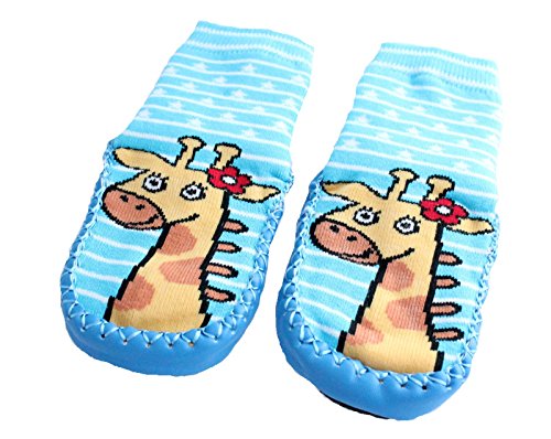 Verified Purchase This review is from: Baby Toddlers Kids Indoor Slippers Shoes Socks Moccasins NON SKID BLUE STRIPED GIRAFFE (Apparel)