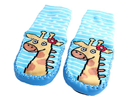 Baby Toddlers Kids Indoor Slipper Shoe Socks Moccasins NON SKID BLUE STRIPED GIRAFFE (9-18 MTHS) is available in Socks, Booties