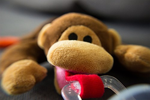 The BabyHuggle Monkey is the ideal accessory for your baby. It is a soft and cute plush toy that is connected to a dummy to stimulate and soothe your baby. With a simple flick of your thumb, you can clip the tail to your baby's bib, car seat straps or stroller. It is also equipped with a squeaker to stimulate your baby's hearing and interest. It is well sewed and made from durable high-quality materials. 100% safe for your baby, BPA & Phthalates Free. It is also a perfect Baby Shower Gift for both boys and girls!