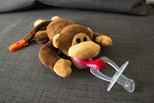 BabyHuggle Monkey Pacifier - Stuffed Animal Binky, Soft Plush Toy with Detachable Silicone Baby Dummy, Paci Clip Leash, Squeaky Sound. Teether Holder. Safe & Soothing Baby Shower Gift for Boys & Girls is available in Soothers