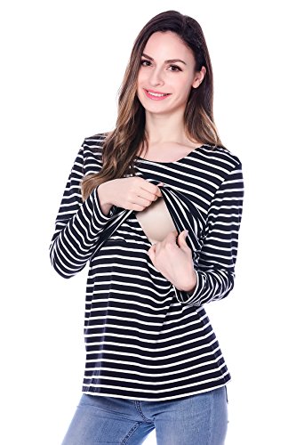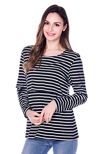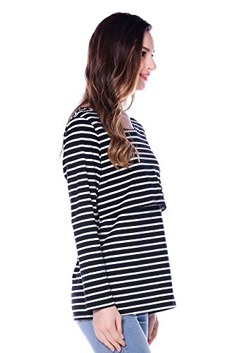 Bearsland Women's Striped Breastfeeding and Nursing Top - UK size 10-12 - Black is available in Blouses & Shirts
