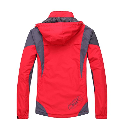 Bigood Women Plain Waterproof Hooded Zipper Jacket Red 2XL Bust 110 cm is available in Outerwear