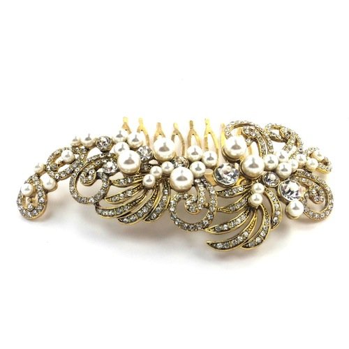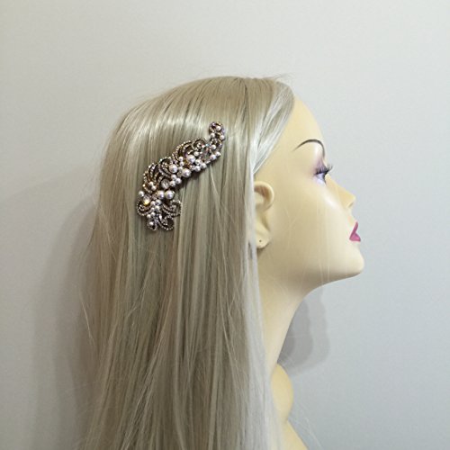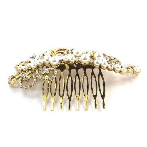 A charming vintage style hair comb with clusters of crystals and pearls on a gold tone metal finish comb. This hair comb is perfect for weddings, proms and other special occasions. Bride Boutique are one of Amazon's top retailers for jewellery, hair accessories and gifts. Visit our Amazon store front now.