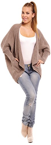 CAPRI MODA - Women's Waffle Knit Cardigan Pockets Batwing Sleeves - CHARLIZE (Cappuccino, ONE SIZE UK 10/12/14) is available in Knitwear