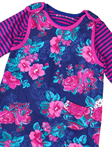 Beautiful Baby Girls Dress Top Set. Stunning Pinks & Purple Flower Print Sleeveless Dress. Matching Striped Long Sleeve Top. Great Gift Idea. Superb Quality.