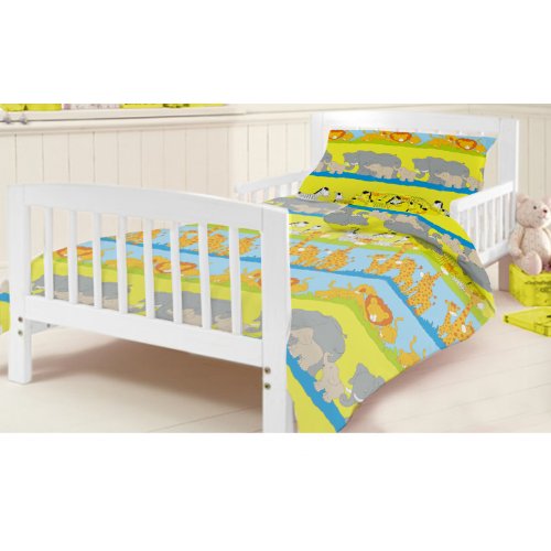 Verified Purchase This review is from: Childrens Junior Cot Bed Colourful Animal Print Complete Bedding Duvet Cover Set with Matching Curtains. Set Includes: Duvet Cover, Pillowcase, Pair Curtains (66" x 54"). Available in 6 Great Fun Kids Designs
