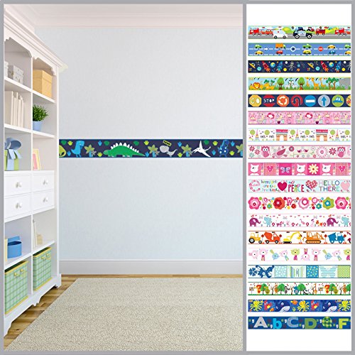 Children's Colourful Self Adhesive 5 Metre Long Vinyl Wallpaper Border Bedroom Décor - Transport is available in Borders