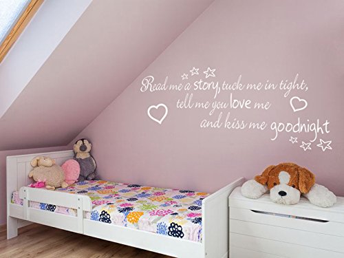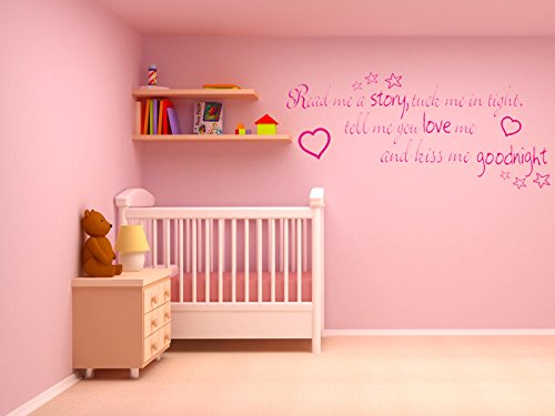 Read me a story, tuck me in tight.. Childs Nursery Wall Art Quote Sticker Decal - Pink Large (950mm x 420mm) is available in Wall Stickers