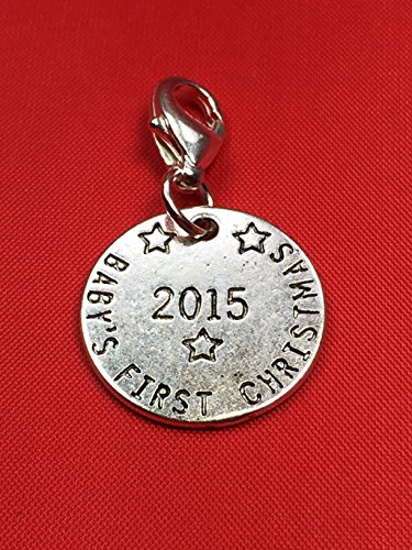 Baby's First Christmas 2015 sign charm with Pink Crystal comes in 3 Different Gift Options Handmade by Libby's Market Place (Organza Gift Bag) is available in Baby Jewellery