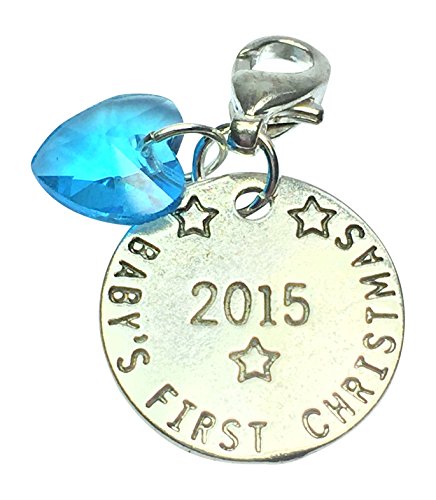 Baby's First Christmas 2015 sign charm with Pink Crystal comes in 3 Different Gift Options Handmade by Libby's Market Place. Round shaped Baby's First Christmas 2015 Clip on charm with Pink Crystal. Pretty little keepsake gift idea for babies born in 2015 and will have their first Christmas. This lovely gift comes in a pretty little organza bag OR pink velvet gift bag OR pink gift box. Charm size is 3.2cm(including clip). Bag size W 5cm x H 7cm. Box size is 4.8cm x 4.8cm x 3cm. This clip on charm also available plain(without crystal) AND/OR blue crystal options(Please see our other products).
