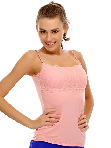 Clovia Women's Soft Cotton Lacy Padded Camisoles Free Size Orange is available in Camisoles & Vests