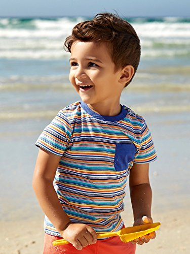 M&Co Baby Boy Cotton Short Sleeve Multi-Coloured Plain Stripe And Summer Themed Print T-Shirts Three Pack Blue 9/12 Mnths is available in T-Shirts