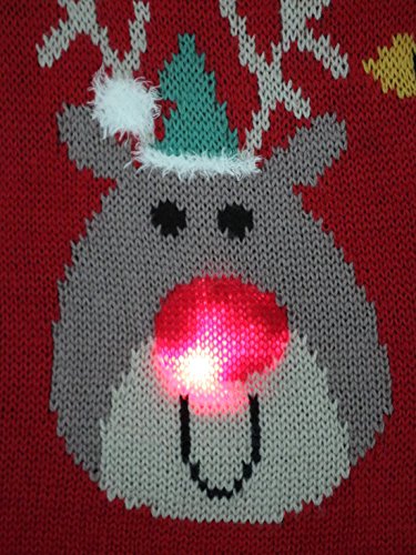 M&Co Baby Red Long Sleeve Rudolph Reindeer Flashing Lights Christmas Jumper Red 9/12 Mnths is available in Knitwear