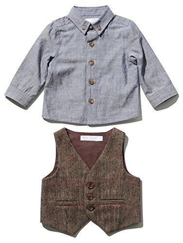 M&Co Baby Boy Long Sleeve Smart Long Sleeve Classic Shirt And Tweed Waistcoat Party Set Blue 12/18 Mnth is available in Shirts