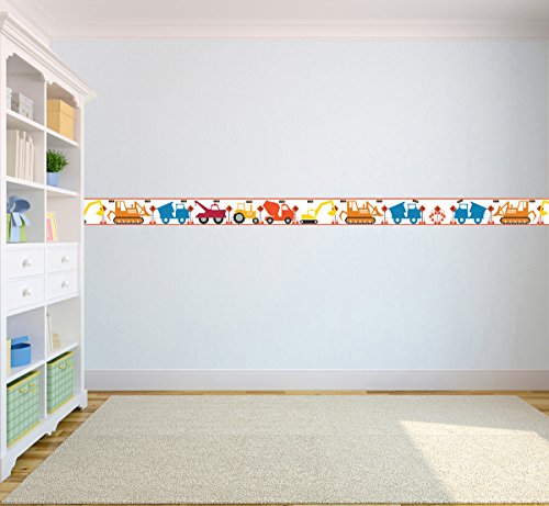 Construction Design Children's Self Adhesive Vinyl Wallpaper Border 15cm Wide 5 Metre Long is available in Borders