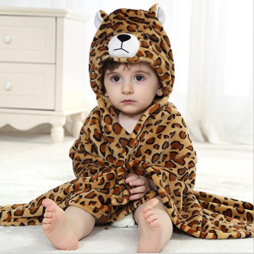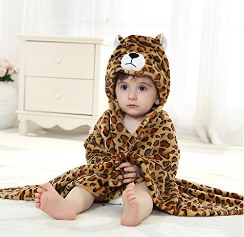 DINGANG Kids Baby Bath Towels Cute Leopard Hooded Ultra-soft Flannel Bathing Wrap Blanket,0-6 Years Old is available in Robes