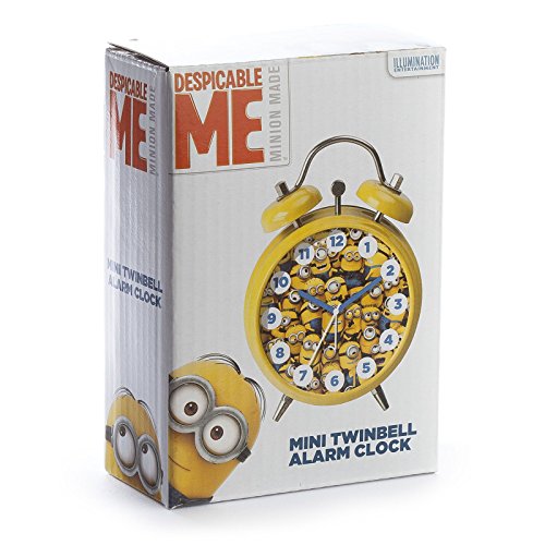 The Minions Mini Twin Bell Alarm Clock is ideal for Minions fans of any age! The size makes it ideal for bedside tables and the easy to read numbers will help your little Minion learn to tell the time.The fun and colourful clock features a great image of the Minions on the face and makes a perfect addition to any Minions themed bedroom or as a gift for any fan.