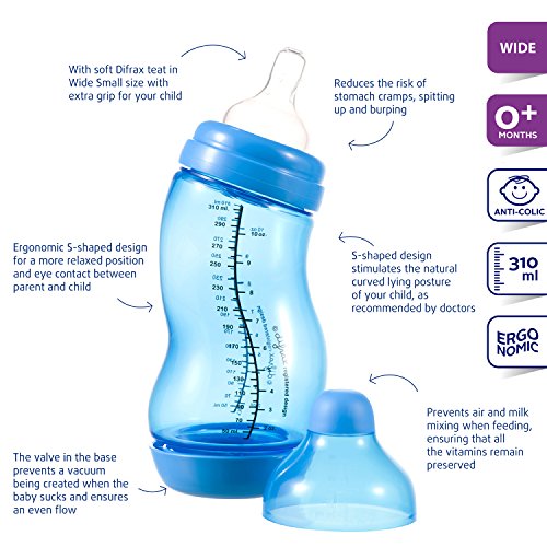 Difrax Anti Colic S-Baby Bottle (310 ml, Blue, Wide) is available in Glass Bottles