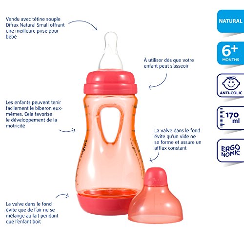 Difrax Easy Grip Baby Bottle (170 ml, Coral) is available in Glass Bottles