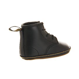 The Crib Lace Auburn Bootie in black leather has been made especially for babies, replicating a 1460 8-eye boot, but with a soft sole and carefully considered attention to detail. The famous Dr. Martens sole pattern is faithfully replicated on the base of the booties, with a 'When I Grow Up I Want To Be A 1460' message.