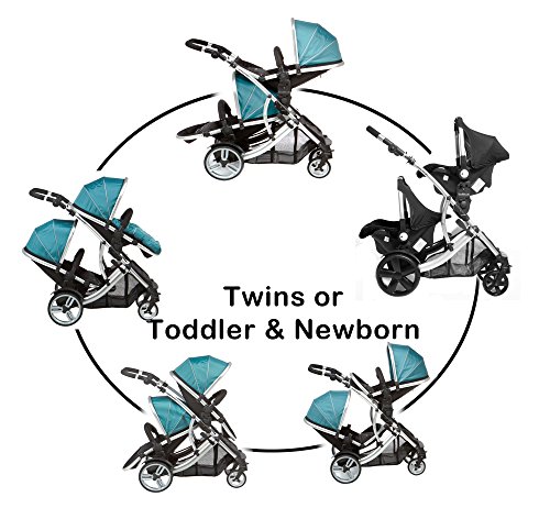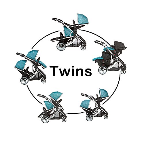 Verified Purchase This review is from: Duellette 21 BS Twin Double pushchair stroller Buggies Tandem 2 seat units, 2 Footmuffs and 2 rain covers, by Kidz Kargo Silver Chassis Teal Mist (Baby Product)