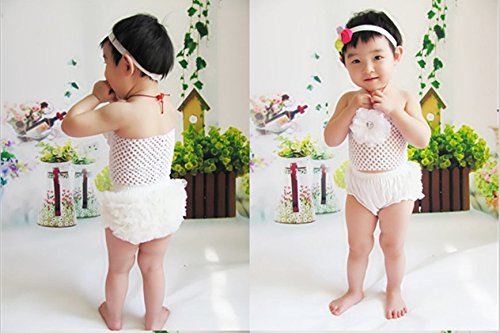 EQLEF® Cute and Soft Lace Ruffle Bloomers Diaper Covers Headband Set For Baby (White) is available in Bloomers