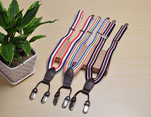Kids Elastic Braces Clip 4 Clips-on Adjustable Suspenders [Pinstripe, Rainbow] is available in Jeans