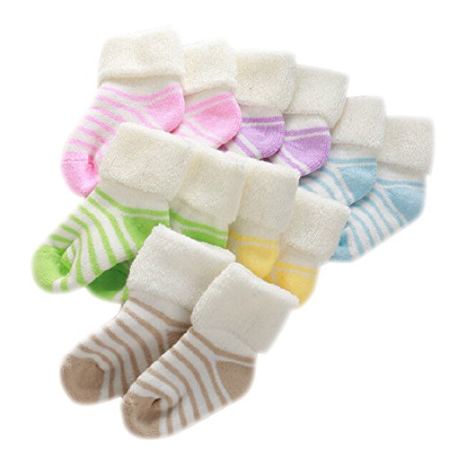 Eleery Unisex Baby Newborn Children 6 Pack Striped Non Slip Terry Socks Candy Color Soft Thicken Socks (Age 0-1) is available in Socks