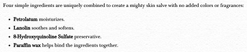 Used for over 100 years on cattle, horses and other domestic animals. It's loaded with lanolin! For CATTLE: Helps soothe small injuries, rash chapping; massage on caked bag. Softens and moistens skin.