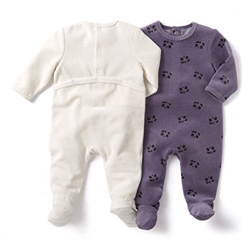 Sleepsuit with feet in super soft and cosy velour. Sold in packs of 2: one to wear whilst the other one is in the wash. 1 printed with pandas and 1 plain with printed motif on the front. 75% cotton, 25% polyester. KEEP AWAY FROM FIRE.Press-stud fastening on back and between the legs to make dressing easy. Non-slip feet from age 12 months (74 cm), elasticated at the back for extra support.
