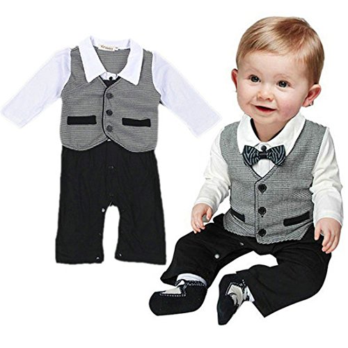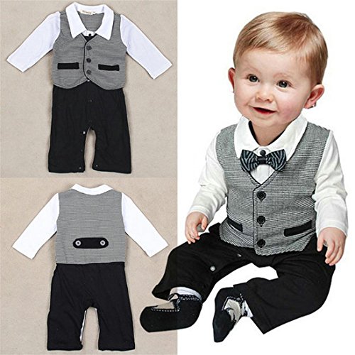 Etosell Newborn Infant Boys BowTie Jumpsuit Clothes Gentleman Pant Suit One-piece 0-18M (90/6-12Months) is available in Bodysuits