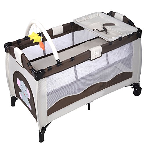FDS Baby Infant Travel Bed Cot Furniture Baby Playpen with Toys Playmat (Cofffee) is available in Travel Cots