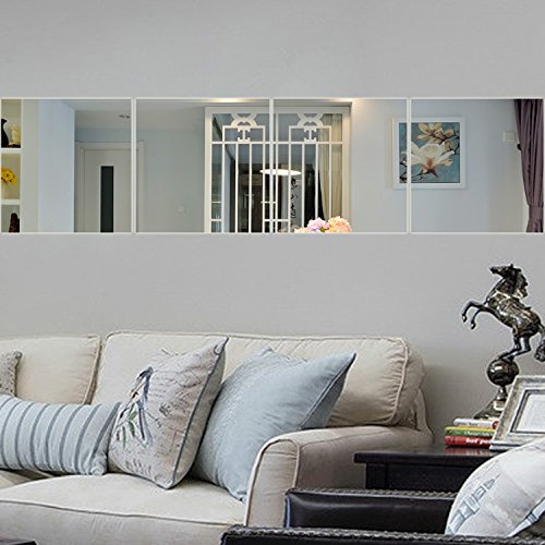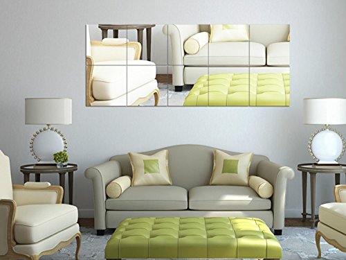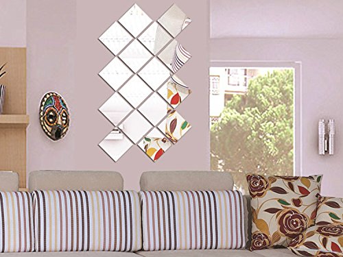 Fancy Decor(TM)10x10cm Silver 6 Pcs Rectangular Squares Acrylic Wall Sticker DIY 3D Mirror Surface Crystal Wall Decor Removable Home Decoration Sofa TV Background Living Room Bathroom Self Adhesive adsivo de parede Mural Decal is available in Wall Stickers