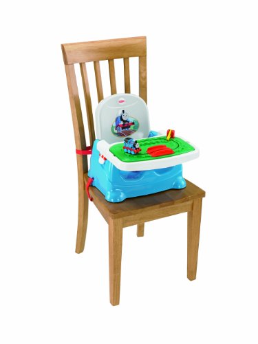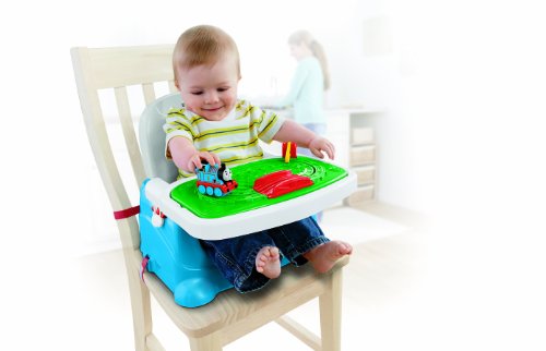 Removable Thomas & Friends toy tray helps keep baby entertained while youre busy preparing meals or cleaning up, making mealtime more fun for babyÉand easier for you, too! Plus, its got all the features you look for in a portable booster, and it even ÒgrowsÓ with baby to a table-time booster seat for toddlers! Make mealtime more fun and enjoyable for everyone! All aboard for mealtime! Removable Thomas & Friends toy tray helps keep baby happily entertained while you prepare meals or clean up. Baby can push Thomas around the track, over the bridge, and through the lift-and-lower gate! When its time to eat, the toy tray easily removes to reveal a clean feeding tray underneath. A comfortable seat and adjustable 3-point restraint keep baby comfortable and secure, and clean-up is a breeze. Both trays are dishwasher-safe, and the seat is easy to wipe clean, with no crevices to trap crumb. ÒGrowsÓ with baby! Fisher-Price Thomas & Friends Tray Play Booster Seat is easy to convert from a baby booster with play and feeding trays, to a Òbig-kidÓ toddler booster for table-time! Just remove the tray and seat back! The Thomas toy tray is also great for table top or floor play! ÒDine In or Takeout?Ó Both! This booster seat is ideal for use at home or on the go. The straps securely adjust to fit most dining chairs, the removable Thomas toy tray keeps baby busy while you prepare or wait for meals (and keeps babys feeding tray clean!), and the seat back folds down for compact portability with an over-the-shoulder strap for easy, hands-free carry. Thomas is attached to the toy tray, so he cant get lost or thrown off-track! Use only with a child who has enough upper body control to sit up unassisted,