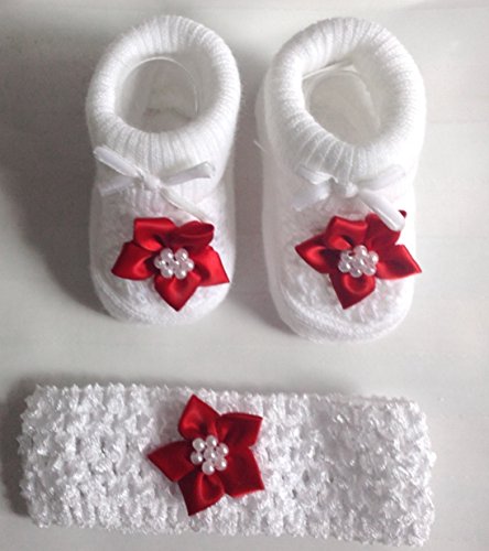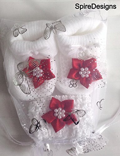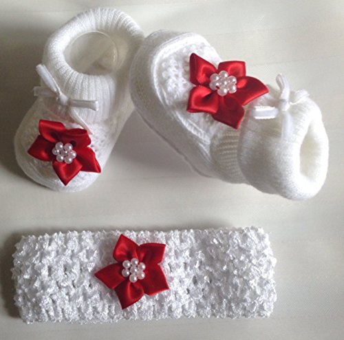 Verified Purchase This review is from: Baby Girls Xmas Red Flower Socks Booties & Crochet Headband- In Gift Bag- 0-3 Months (Baby Product)