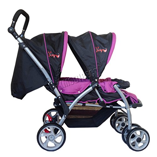 FoxHunter Baby Toddler Tandem Double Stroller Twin Pushchair Pram Buggy Travel With Rain Cover Purple New is available in Pushchairs & Prams